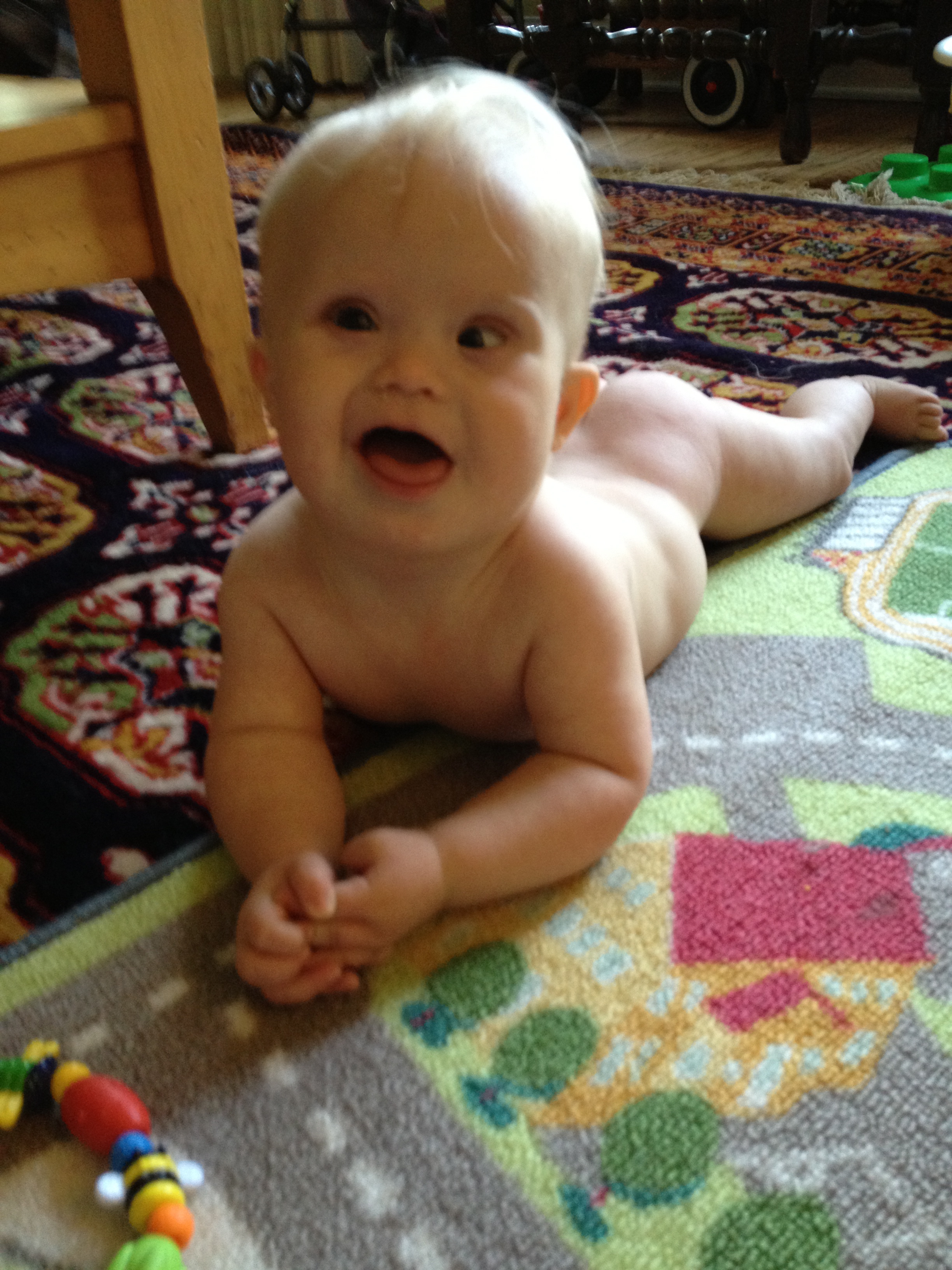 And I see the beginning of a lifelong pattern of questioning whether or not something is the direct result of Lyra’s Ds. Earlier, I had asked if she refused a bottle because of the hypotonia attendant to Ds. Because she is a champ at breastfeeding, which requires more muscle strength than drinking from a bottle, I believe Lyra’s rejection of bottles is purely personality and not due to any Ds related hypotonia. Now, we’ve learned, her new vivaciousness is attributable to her Ds and not her pharmacological treatment for her thyroid issues.