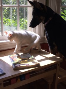 She begged to be let in even when all of us, the people, were outside in the yard. To her, the cats were prey and as a predator, she could not “leave it” as we all told her repeatedly.